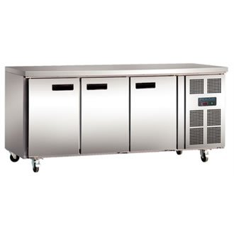 PRODUCT DESCRIPTIONS:A three door counter freezer with a professional finish ideal for all catering establishments. The electronic display ensures that the unit is easy to operate and to monitor. Ample space within the unit and on the counter top will provide you with a professional space to store and prepare food. Front-lockable castors allow for the unit to be moved for cleaning purposes or for when the needs of your kitchen change.