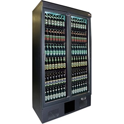 PRODUCT DESCRIPTIONS:Attractive, large capacity upright cooler with finned evaporators providing quick pull down for faster cooling. Double sliding doors are lockable for added security. Electronic thermostat and auto-defrost. Adjustable feet allow level positioning on uneven floors.